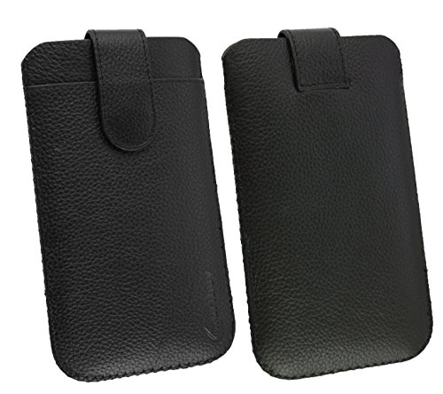 Emartbuy Polaroid Cosmos Dual Sim 5.5 Pollice Smartphone Genuino Nero Vitello Pelle Custodia Case Cover Sleeve (Misura LM4) con Scomparti per Credito Carte & Tirare Linguetta