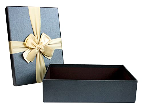 Emartbuy Scatola Regalo Rigida, 24,5 * 17 * 6,5 cm, Scatola Nera Strutturata Con Coperchio e Nastro