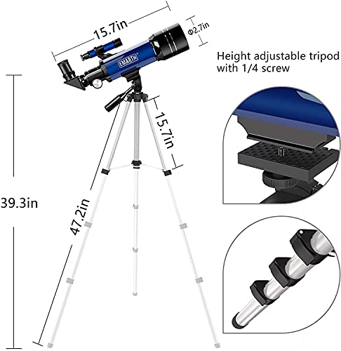 EMARTH Telescopio per bambini principianti adulti, 70mm telescopio rifrattore astronomico con treppiede regolabile e & Finder Scope- Telescopio da viaggio portatile perfetto per bambini adolescenti