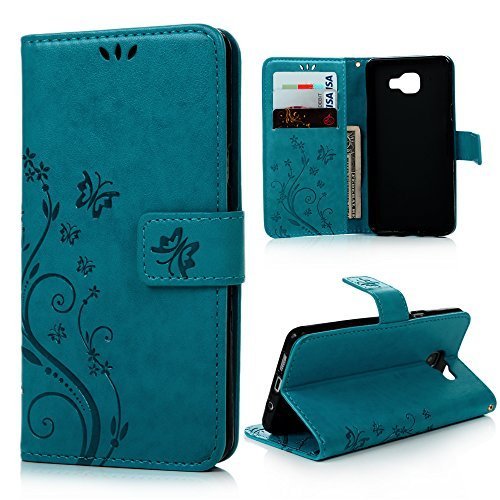 EMAXELERS Galaxy A5 2016 - Cover a portafoglio con motivo a farfalla, in pelle PU, per Samsung Galaxy A5 2016, motivo: farfalla blu