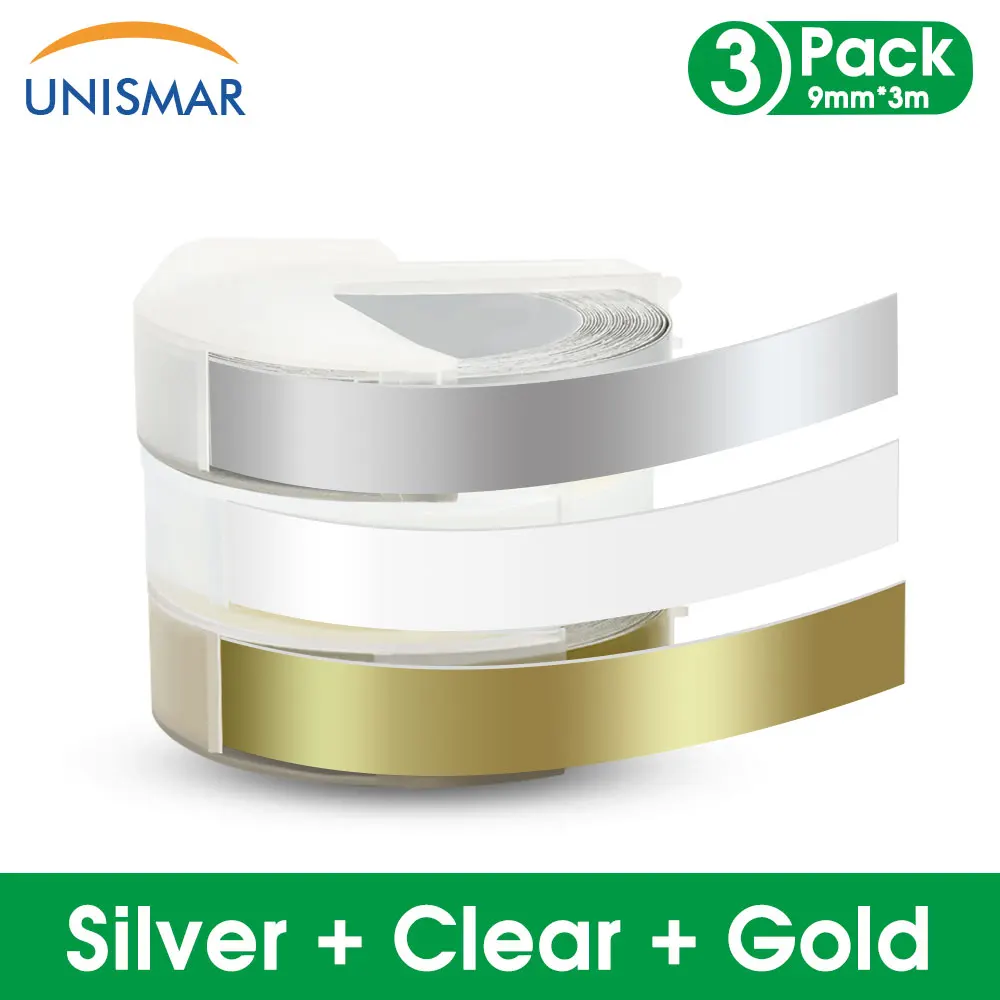 3PK Embossing Label Printers for 9mm 3D Embossing Label Tapes Gold Silver Clear 3D Embossing Tape Compatible for Dymo Machine