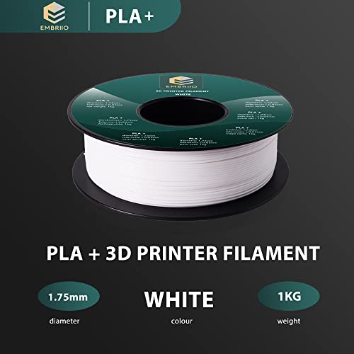 EMBRO PLA+ Plus Filamento 1.75mm per Stampanti 3D, Senza Grovigli Elevata Resistenza1kg (2.2lbs) Qualità Premium 3D Build Surface, Tolleranza del Diametro +/- 0.02 mm (Bianco)