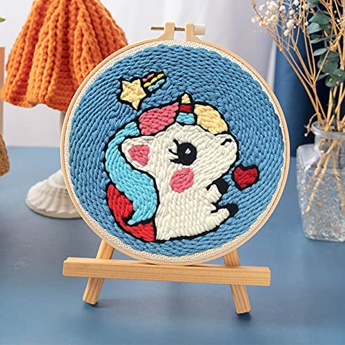Embroidery Kit, XiXiRan Strumento di Ricamo per Principianti, Ricamo Starter Kit con Telaio, Kit di Ricamo per Aghi da Punzonatura, con Penna a Punzone, per Bambini, Adulti, Mestiere (Unicorno)