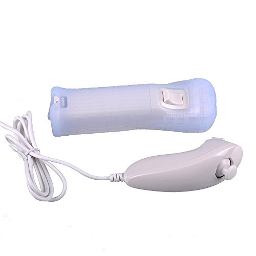 EMEBAY - costruito in 2 in 1 Motion Plus telecomando e Nunchuckcon Silicon Case per Nintendo Wii + custodia-Bianco