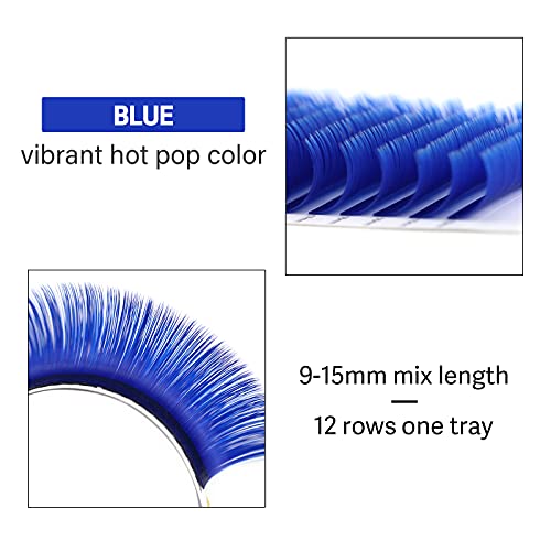 EMEDA Blu Ciglia Estensioni Volume Russo 9-15mm D Mix 0,07mm Automatico 3D 5D 6D-10D Ciglia Finte Estensioni Fiorite Auto-ventaglio Naturale Lashes Easy Fan Eyelash Extensions Estensione (Blue)
