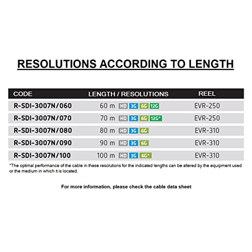 Emelec VIASCOM R-SDI-3007N/100-100m Cavo Video 4K-UHD 6G-SDI (1.0/4.6/7.0) montato su portacavi con BNC 4K-UHD - Conduttore Unifilare - Colore Nero - PVC flessibile