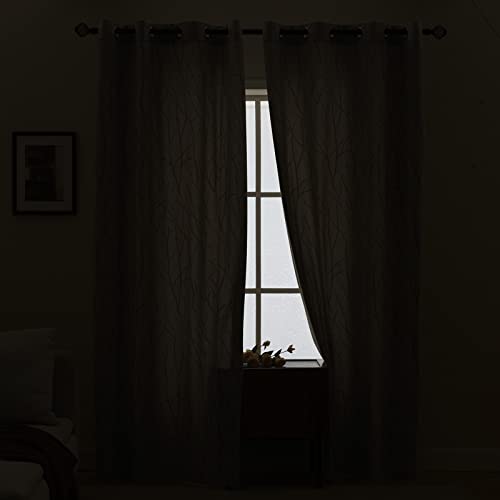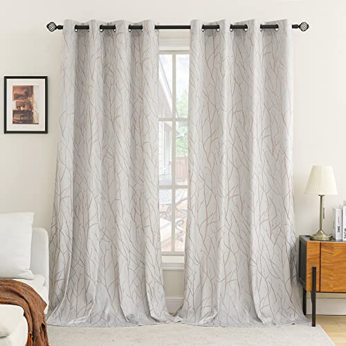 EMEMA Coppia di tende in velluto grigio-bianco con motivo a rami, 200 cm, con occhielli, per soggiorno, camera da letto, cameretta dei bambini, 117 x 228 cm, 2 pannelli