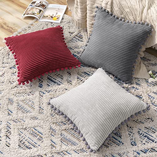 EMEMA Copricuscini Federe per Cuscini Morbido e Moda Pompons Elegante con Cerniera Decorativo per Divano Sedia Moderna e Elegante Camera da Letto Soggiorno Unita Tinta 2 Pezzi 45x45cm Grigio Chiaro