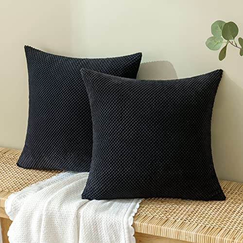 EMEMA Federe Granulari Piccole per Cuscini Fodere Copricuscini Decorativi Morbidi Quadrati per Divano Lettoin Misto Poliestere Moderna e Elegante Camera da Letto Soggiorno 2 Pezzi 45x45cm Nero