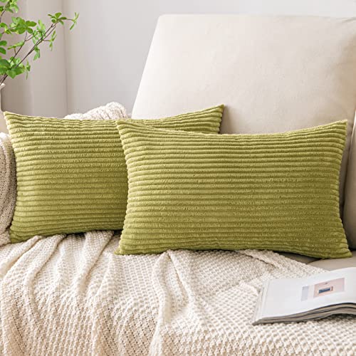 EMEMA Fodere Cuscini in Velluto a Coste Confezione da 2 Decorative Federe Morbido Copricuscini Cuscino Moderne Comodo Robusto per Camera da Divano Letto 30x50cm Verde erba