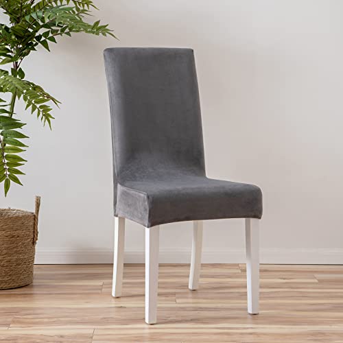 EMEMA Grigio Scuro Coprisedie con Schienale in velluto 6 Pezzi, Lavabile Estraibile Misura Universale Fodere per Sedia in Elasticizzato, Moderna Sala da Pranzo, Hotel, Arredamento Ristorante, Office