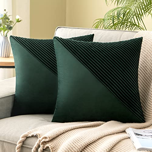 EMEMA 2 Pezzi Copricuscini per Divano Federe Cuscini divano per Camera da Letto Federa Moderna per Decorativa Fodera Cuscino Quadrata per Salotto Soggiorno Poltrona 45x45 cm Verde Scuro