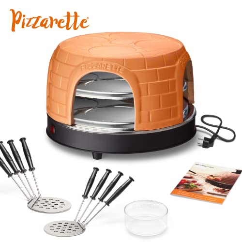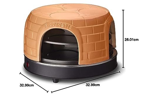 Emerio PIZZARETTE PO-116124.1 - Forno per pizza, realizzato a mano, in terracotta, design brevettato per mini pizza, vero divertimento in famiglia per 8 persone