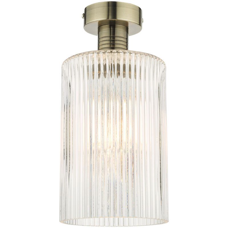 Dar Emerson Plafoniera semi-incasso Ottone anticato Cilindro Vetro rigato | Finitura: ottone anticato, vetro rigato | Classificazione IP: IP20 | Altezza: 29cm | Diametro: 15 cm | Tipo di lampada: E27 | N. di lampade: 1 | Lampadina inclusa: No | Peso: 1,14 kg | Potenza (massima): 60W