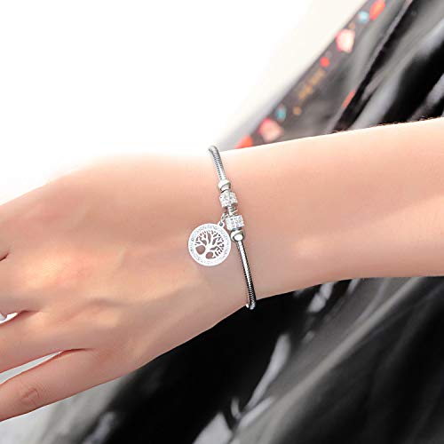 Emibele Braccialetto da Donna, Bracciale in Acciaio Inossidabile con Brillantini Albero della Fortuna, Bracciale con Chiusura Magnetica, 195 mm Bracciale Avvolgente per Donna, Ragazze - Argento