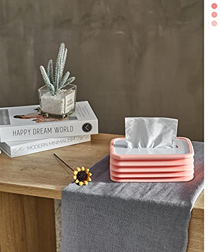 Emibele Scatola di Fazzoletti Rettangolare Pieghevole in Silicone, Portafazzolettini Distributore Dispenser di Fazzoletti Centrotavola Porta Salvietti per Bagno Camera da Letto Ufficio Auto - Rosa