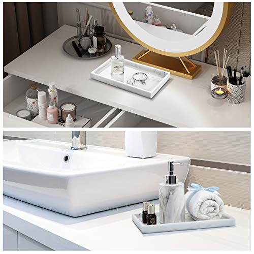 Emibele Vassoio Rettangolare Marmorizzato in Resina da Bagno Cucina Vanità, Organizzatore Portaoggetti Porta Gioielli Anelli Trucco Cosmetici Gioielli Profumo Sapone Shampoo Decorativo, Marmo Bianco