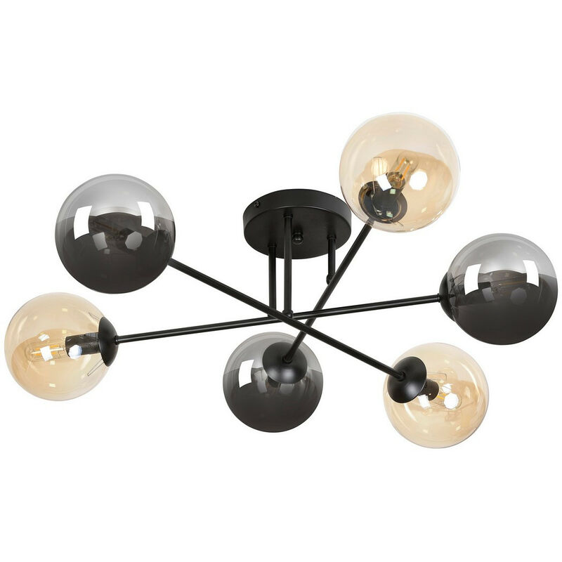 Emibig BRENDI Lampada da soffitto semi-incasso a braccio multibraccio nero con paralumi in vetro grafite trasparente, 6x E14 | Finitura: nero | Materiale: acciaio, vetro | Grado di protezione IP: IP20 | Altezza: 26 cm | Larghezza: 75 cm | Diametro paralume: 14 cm | Tipo di lampada: E14 | N. di lampade: 6 | Lampadina inclusa: non inclusa | Dimmerabile: Sì - Sono necessarie lampadine dimmerabili | Peso: 3,3 kg | Potenza (max): 40 W