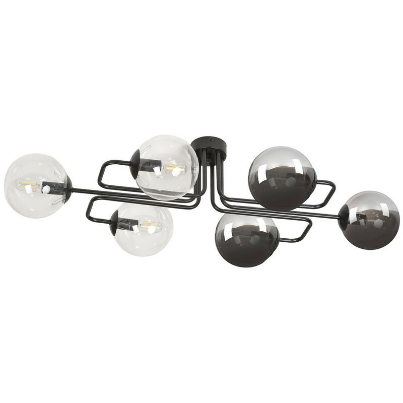 Emibig BRENDI Plafoniera a sospensione Globe Bar nera con paralumi in vetro grafite trasparente, 6x E14 | Finitura: nero | Materiale: acciaio, vetro | Grado di protezione IP: IP20 | Altezza: 32 cm | Larghezza: 93 cm | Diametro paralume: 14 cm | Tipo di lampada: E14 | N. di lampade: 6 | Lampadina inclusa: non inclusa | Dimmerabile: Sì - Sono necessarie lampadine dimmerabili | Peso: 3,3 kg | Potenza (max): 40 W