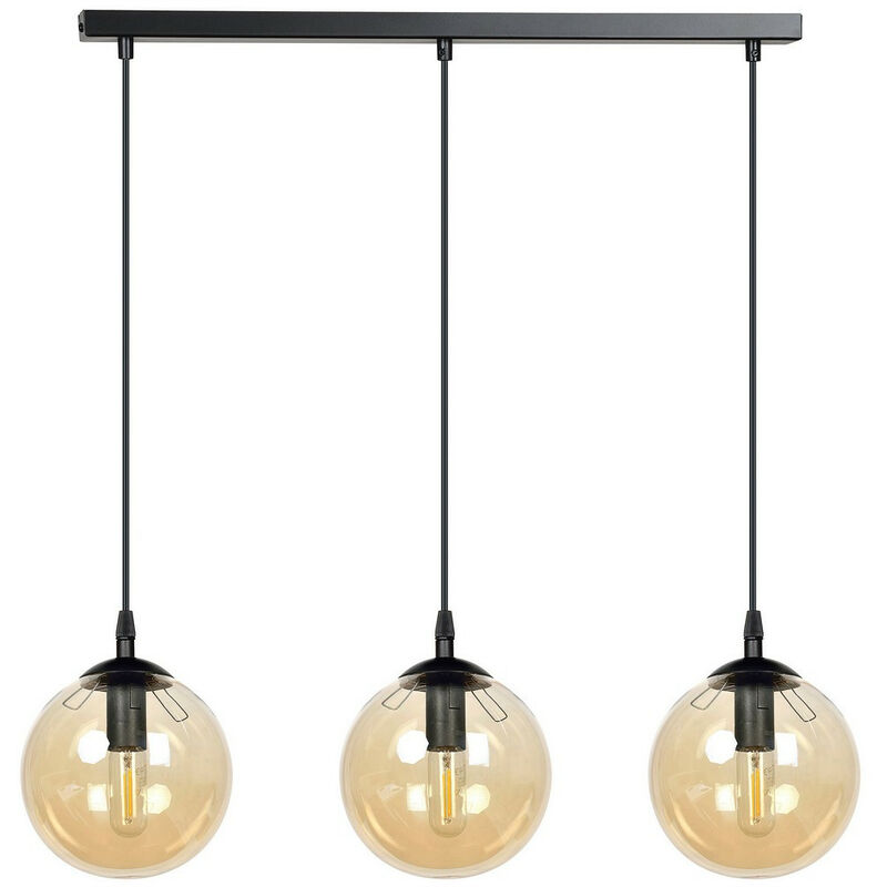 Emibig COSMO Plafoniera a sospensione Globe Bar nera con paralumi in vetro ambrato, 3x E14 | Finitura: nero | Materiale: acciaio, paralume in vetro | Grado di protezione IP: IP20 | Altezza: 100 cm | Larghezza: 70 cm | Diametro paralume: 14 cm | Tipo di lampada: E14 | N. di lampade: 3 | Lampadina inclusa: non inclusa | Dimmerabile: Sì - Sono necessarie lampadine dimmerabili | Peso: 2,4 kg | Potenza (max): 40 W