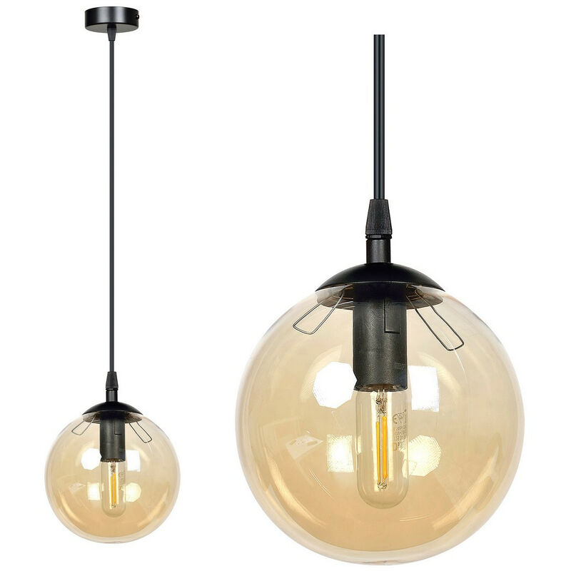 Emibig COSMO Plafoniera a sospensione Globe nera con paralumi in vetro ambrato, 1x E14 | Finitura: nero | Materiale: acciaio, paralume in vetro | Grado di protezione IP: IP20 | Altezza: 100 cm | Larghezza: 12 cm | Diametro paralume: 14 cm | Tipo di lampada: E14 | N. di lampade: 1 | Lampadina inclusa: non inclusa | Dimmerabile: Sì - Sono necessarie lampadine dimmerabili | Peso: 1,1 kg | Potenza (max): 40 W