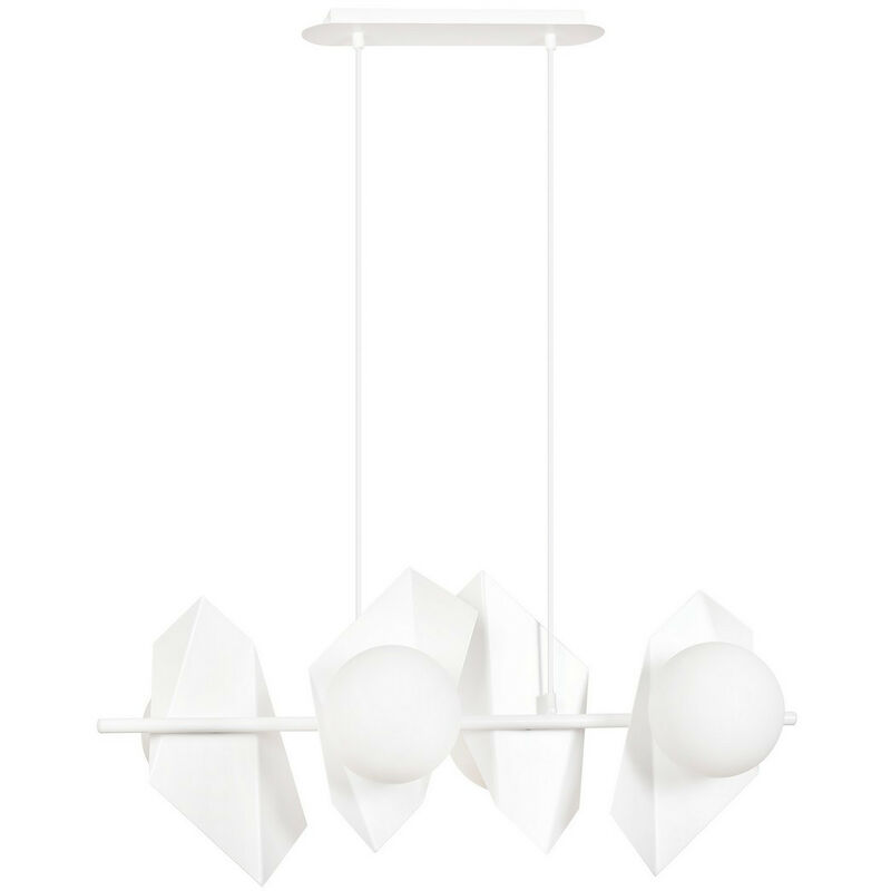 Emibig DRIFTON Plafoniera a sospensione bianca di design con paralumi in vetro bianco, 4x E14 | Finitura: bianco | Materiale: acciaio, paralume in vetro | Grado di protezione IP: IP20 | Altezza: 100 cm | Larghezza: 90 cm | Diametro paralume: 15 cm | Tipo di lampada: E14 | N. di lampade: 4 | Lampadina inclusa: non inclusa | Dimmerabile: Sì - Sono necessarie lampadine dimmerabili | Peso: 4 kg | Potenza (max): 40 W