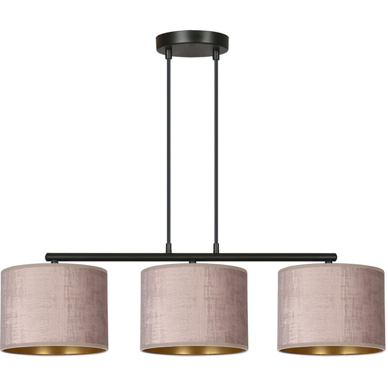 Emibig HILDE Plafoniera a sospensione a barra nera con paralumi in tessuto rosa, 3x E27 | Finitura: nero | Materiale: acciaio, paralume in tessuto | Grado di protezione IP: IP20 | Altezza: 100 cm | Larghezza: 72 cm | Diametro paralume: 20 cm | Tipo di lampada: E27 | N. di lampade: 3 | Lampadina inclusa: non inclusa | Dimmerabile: Sì - Sono necessarie lampadine dimmerabili | Peso: 2,3 kg | Potenza (max): 60 W