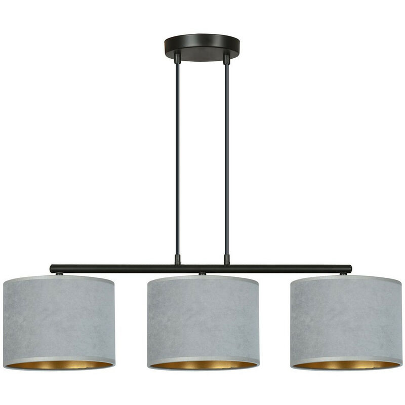 Emibig HILDE Plafoniera a sospensione a barra nera con paralumi in tessuto grigio, 3x E27 | Finitura: nero | Materiale: acciaio, paralume in tessuto | Grado di protezione IP: IP20 | Altezza: 100 cm | Larghezza: 72 cm | Diametro paralume: 20 cm | Tipo di lampada: E27 | N. di lampade: 3 | Lampadina inclusa: non inclusa | Dimmerabile: Sì - Sono necessarie lampadine dimmerabili | Peso: 2,3 kg | Potenza (max): 60 W