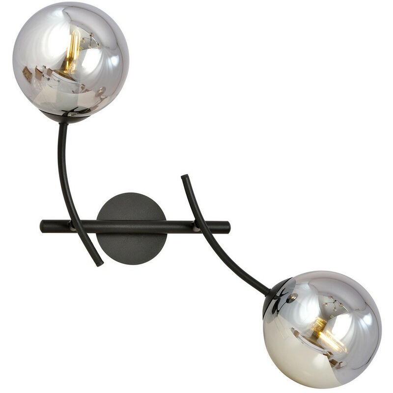 Emibig HUNTER Lampada da parete globo nera con paralumi in vetro grafite, 2x E14 | Finitura: nero | Materiale: acciaio, vetro | Grado di protezione IP: IP20 | Altezza: 38 cm | Larghezza: 35 cm | Diametro paralume: 14 cm | Tipo di lampada: E14 | N. di lampade: 2 | Lampadina inclusa: non inclusa | Dimmerabile: Sì - Sono necessarie lampadine dimmerabili | Peso: 1,5 kg | Potenza (max): 40 W