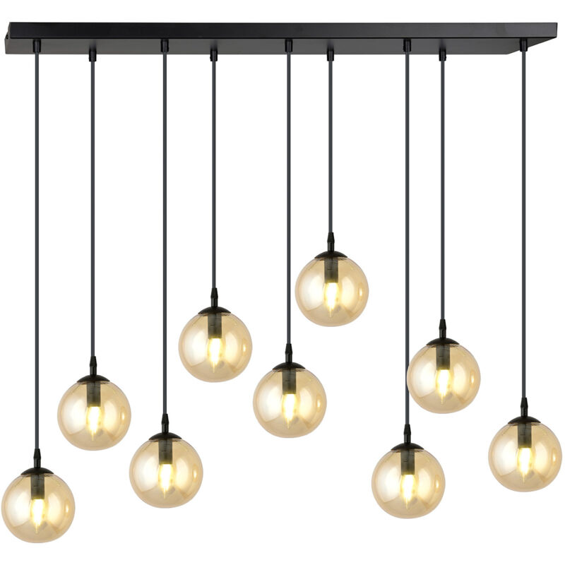 Emibig COSMO Plafoniera a sospensione a grappolo globo nero con paralumi in vetro ambrato, 9x E14 | Finitura: nero | Materiale: acciaio, vetro | Grado di protezione IP: IP20 | Altezza: 120 cm | Larghezza: 104 cm | Diametro paralume: 14 cm | Tipo di lampada: E14 | N. di lampade: 9 | Lampadina inclusa: non inclusa | Dimmerabile: Sì - Sono necessarie lampadine dimmerabili | Peso: 3,4 kg | Potenza (max): 40 W