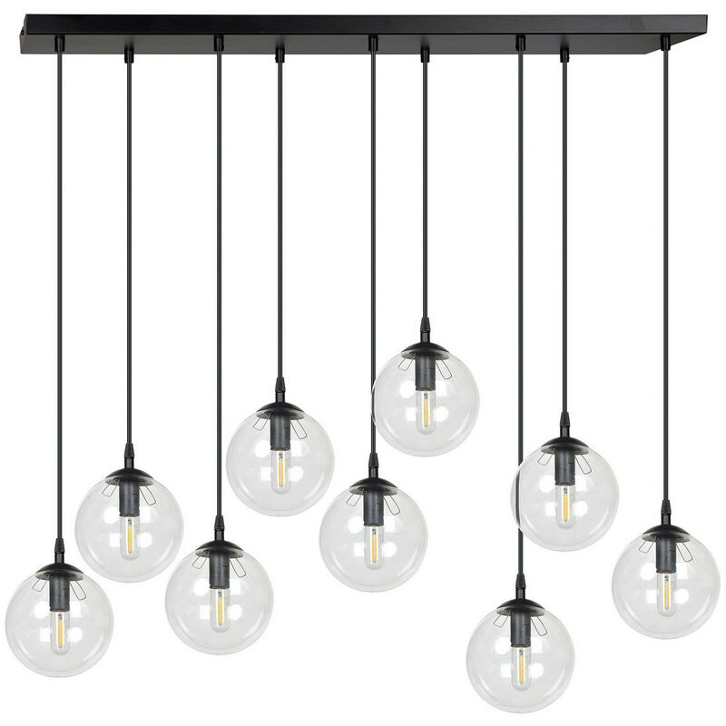 Emibig COSMO Plafoniera a sospensione a grappolo globo nero con paralumi in vetro trasparente, 9x E14 | Finitura: nero | Materiale: acciaio, vetro | Grado di protezione IP: IP20 | Altezza: 120 cm | Larghezza: 104 cm | Diametro paralume: 14 cm | Tipo di lampada: E14 | N. di lampade: 9 | Lampadina inclusa: non inclusa | Dimmerabile: Sì - Sono necessarie lampadine dimmerabili | Peso: 3,4 kg | Potenza (max): 40 W
