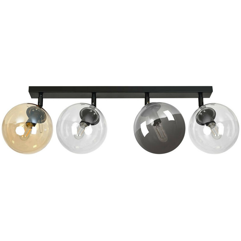 Emibig TOFI Faretto da soffitto a forma di globo nero con paralumi in vetro trasparente, grafite e ambra, 4x E14 | Finitura: nero | Materiale: acciaio, vetro | Grado di protezione IP: IP20 | Altezza: 20 cm | Larghezza: 70 cm | Diametro paralume: 14 cm | Tipo di lampada: E14 | N. di lampade: 4 | Lampadina inclusa: non inclusa | Dimmerabile: Sì - Sono necessarie lampadine dimmerabili | Peso: 2,3 kg | Potenza (max): 40 W