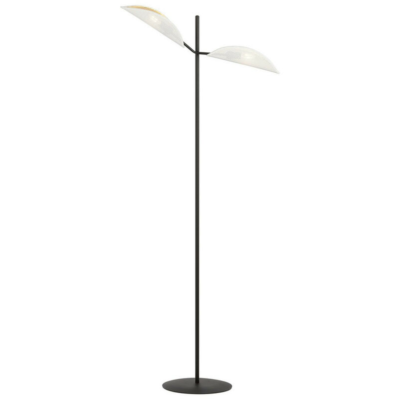 Emibig VENE Lampada da terra multibraccio nera con paralumi in tessuto bianco e oro, 2x E14 | Finitura: nero | Materiale: acciaio, paralume in tessuto | Grado di protezione IP: IP20 | Altezza: 150 cm | Larghezza: 69 cm | Diametro paralume: 12 cm | Tipo di lampada: E14 | N. di lampade: 2 | Lampadina inclusa: non inclusa | Peso: 3 kg | Potenza (max): 40 W