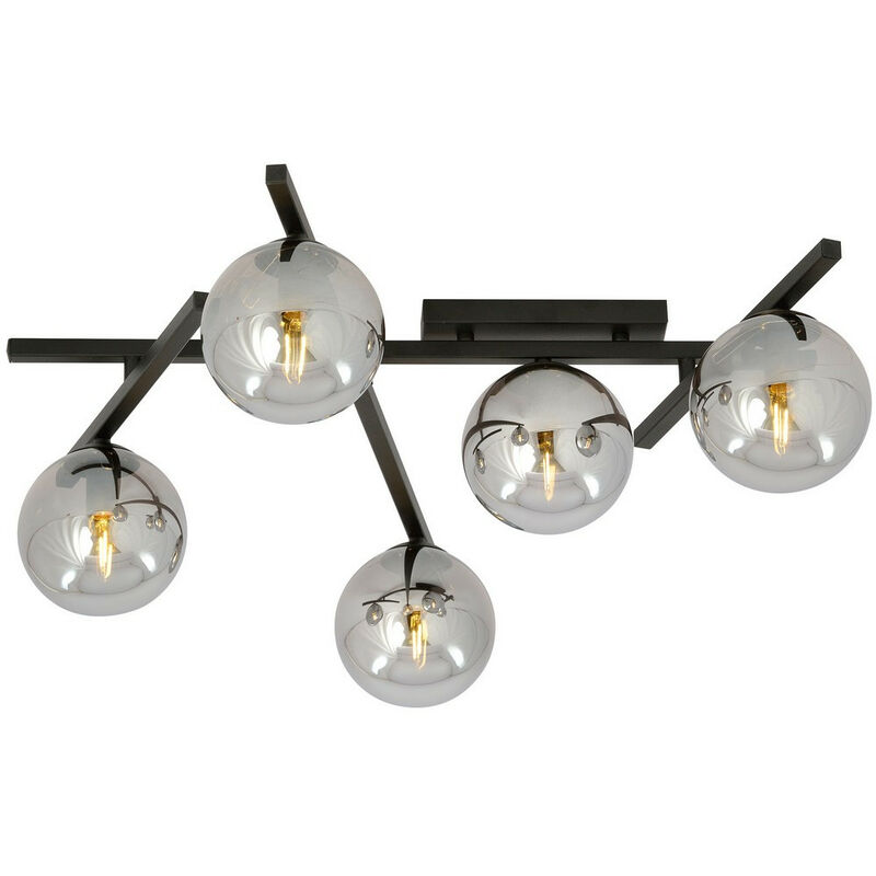 Emibig SMART Plafoniera a globo nera con paralumi in vetro grafite, 5x E14 | Finitura: nero | Materiale: acciaio, vetro | Grado di protezione IP: IP20 | Altezza: 25 cm | Larghezza: 67 cm | Diametro paralume: 15 cm | Tipo di lampada: E14 | N. di lampade: 5 | Lampadina inclusa: non inclusa | Dimmerabile: Sì - Sono necessarie lampadine dimmerabili | Peso: 3,7 kg | Potenza (max): 40 W