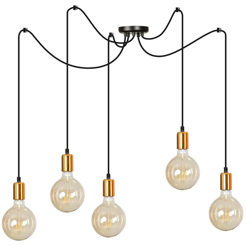 Emibig SPARK Plafoniera a sospensione Cluster Nera 5x E27 | Finitura: nero | Materiale: acciaio, rame | Grado di protezione IP: IP20 | Altezza: 200 cm | Larghezza: N/Acm | Tipo di lampada: E27 | N. di lampade: 5 | Lampadina inclusa: non inclusa | Dimmerabile: Sì - Sono necessarie lampadine dimmerabili | Peso: 1,8 kg | Potenza (max): 60 W