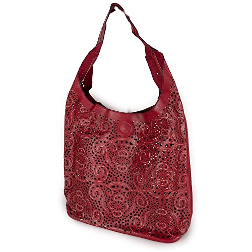 Emila Borsa rossa donna traforata da ragazza shopping bag hobo grande con tracolla grande capiente a spalla giornaliera tutti i giorni da lavoro ufficio viaggio moda primavera estate 2023 Rosso