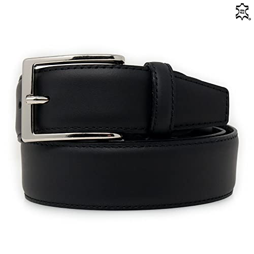 Emila Cintura uomo nera extra lunga taglie forti cinta large di grandi misure artigianale elegante per abiti pantaloni da ragazzo con fibbia made in italy belt classica xxl 3,5 cm Vera Pelle Nero