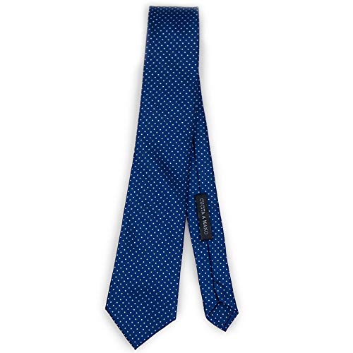 Emila Cravatta blu a pois celesti uomo cucita a mano micro fantasia da lavoro ufficio elegante business cerimonia eventi classica signore per ragazzo larga 8 145 cm con astuccio regalo senza nodo Blu
