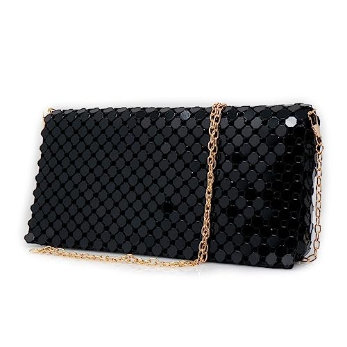 Emila Pochette nera busta a mano con tracolla removibile da donna elegante cerimonia piccola borsa clutch borsetta per ragazza passeggio sera semplice viaggio cellulare trucchi Maglia metallica Nero