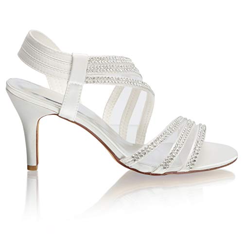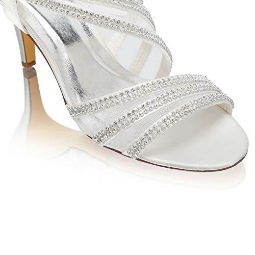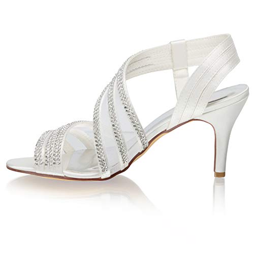 Emily Bridal Scarpe da Sposa Cinturino Tacco Alto Wies con Strass (EU41, Avorio)