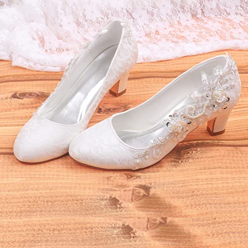Emily Bridal Scarpe da sposa Donna Seta come Raso Tacco spesso Stiletto con punto Pizzo Fiore Perla di cristallo, avorio, 35 EU