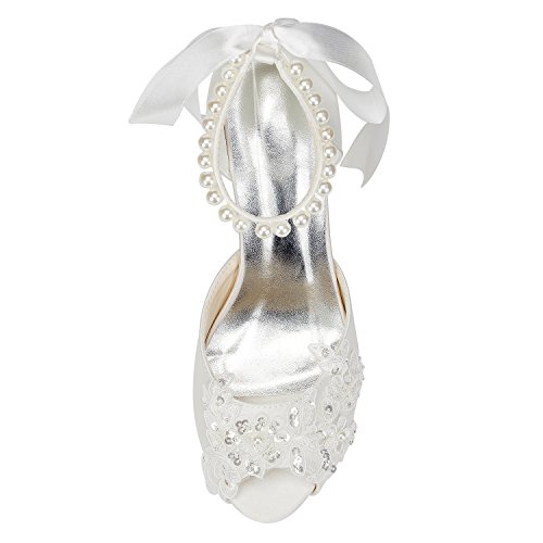 Emily - Scarpe da sposa con tacco alto e cinturino alla caviglia color avorio, con paillettes e fiocco, (avorio), 40.5 EU