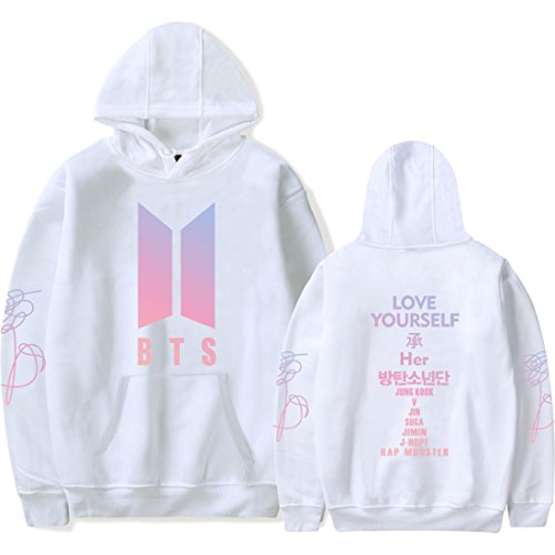 EMILYLE - Felpa unisex con cappuccio e maniche lunghe, motivo: Love Yourself Her Bangtan Boys bianco S