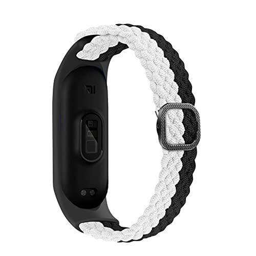 EMIOBAND Cinturino intrecciato solo loop compatibile per Xiaomi Mi Band 7 6 5,cinturino sportivo in nylon elastico regolabile compatibile per Xiaomi Mi Band 6,Mi Band 5,Mi Band 7,2 nero bianco