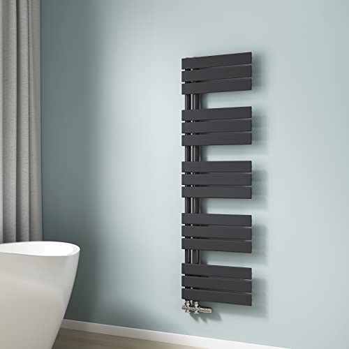 EMKE Scaldasalviette termoarredo piatto, Termoarredo da Bagno, 1320 x 400 mm, antracite colore, collegamento laterale, 570W, radiatore scaldasalviette ad acqua calda