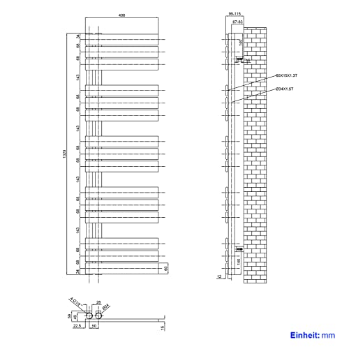 【Risparmio di spazio】: Mettere Scaldasalviette Radiatore sul muro può risparmiare molto spazio, la distanza dal muro (il muro al bordo esterno del radiatore): 99-115 mm