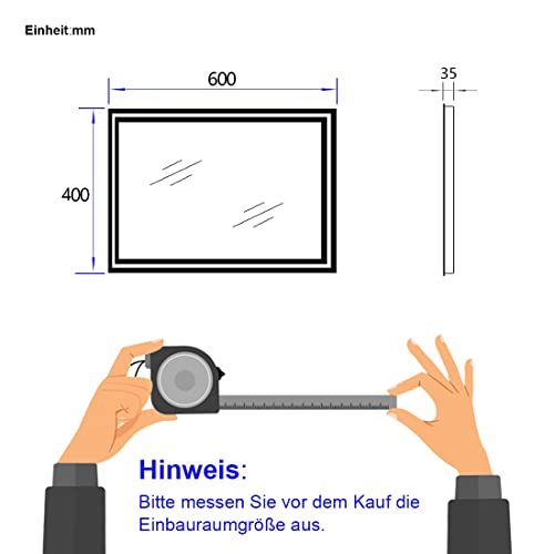 Installazione verticale/orizzontale: la dimensione dello specchio da bagno è di 40 x 60 cm. È possibile appendere lo specchio del bagno orizzontalmente o verticalmente.