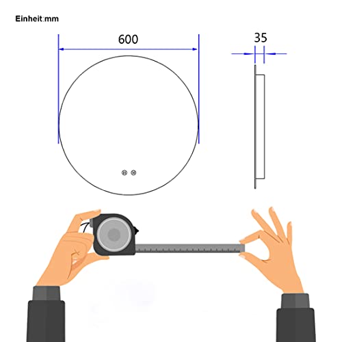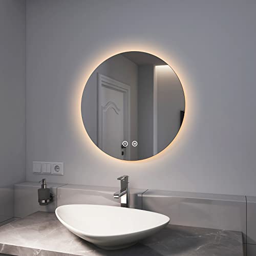 EMKE Specchio Bagno Rotondo con Luce 60 cm, Specchio Bagno LED con Interruttore Tattile Luce Bianca Fredda 6500K / Luce Calda 3000K / Luce Neutra 4000K (Tipo 2)