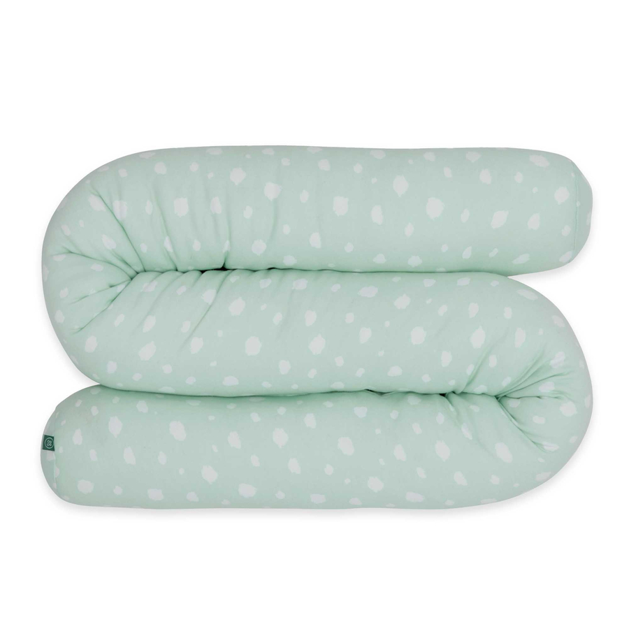 Dettagli del prodotto: Serpente da letto con punti dimensioni: 180 x 13 cm Colore: menta Materiale e istruzioni per la cura: Materiale: 100% cotone organico Lavabile a 30°C Non candeggiare Non asciugare in asciugatrice