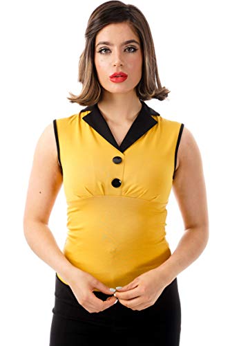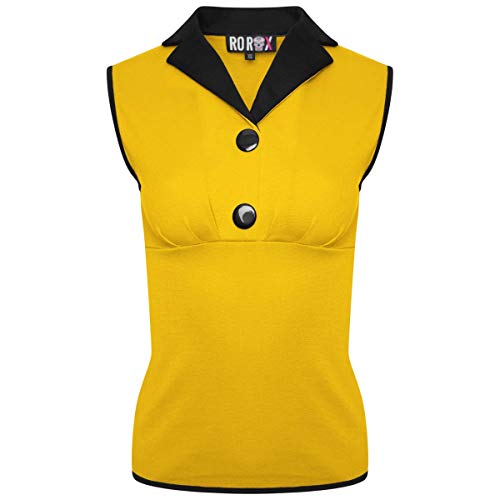 Ro Rox Emma Retro Rockabilly Pin Up 1950's Vintage Pinup V Neck Top (Mostarda, 4XL)